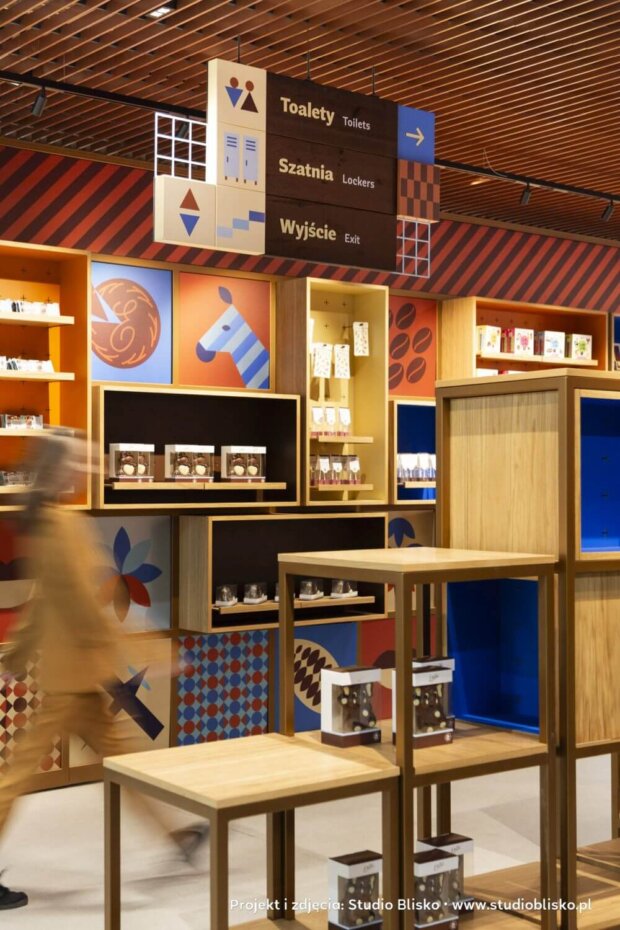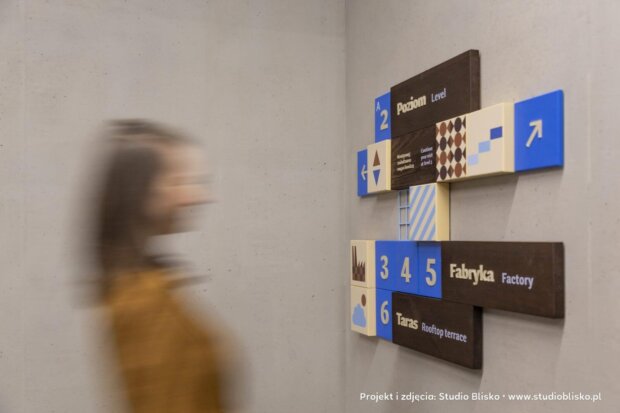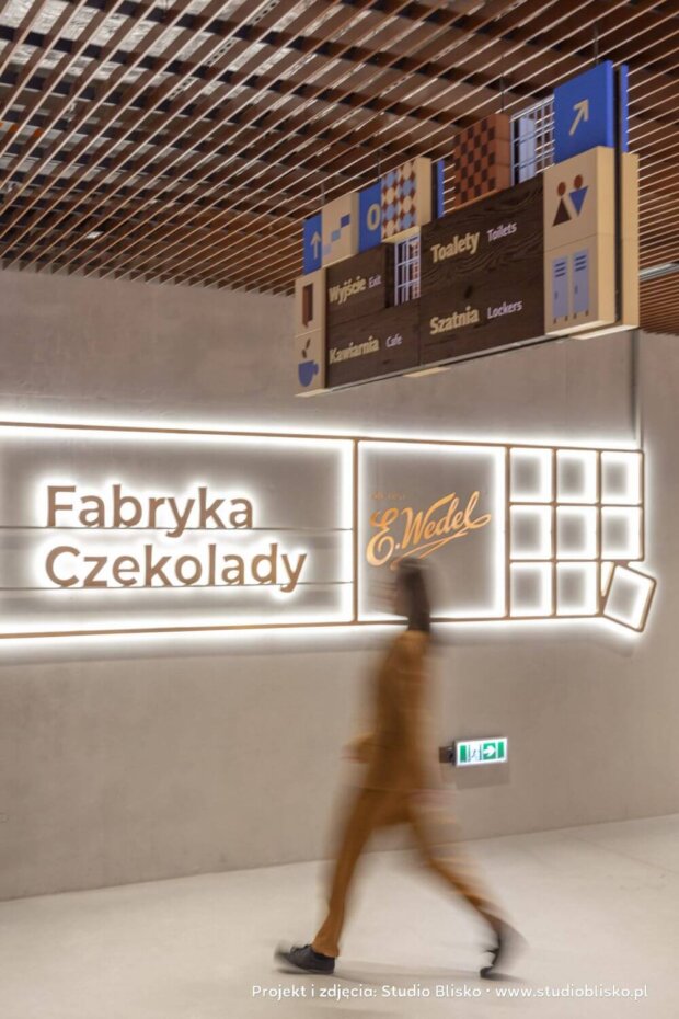 Oznakowanie wewnętrzne zaprojektowane dla Fabryki Czekolady E.Wedel, przez Annę Nowokuńską-Maksymiuk ze Studio Blisko, było jednym z najbardziej skomplikowanych i unikalnych projektów, w jakich uczestniczyliśmy.