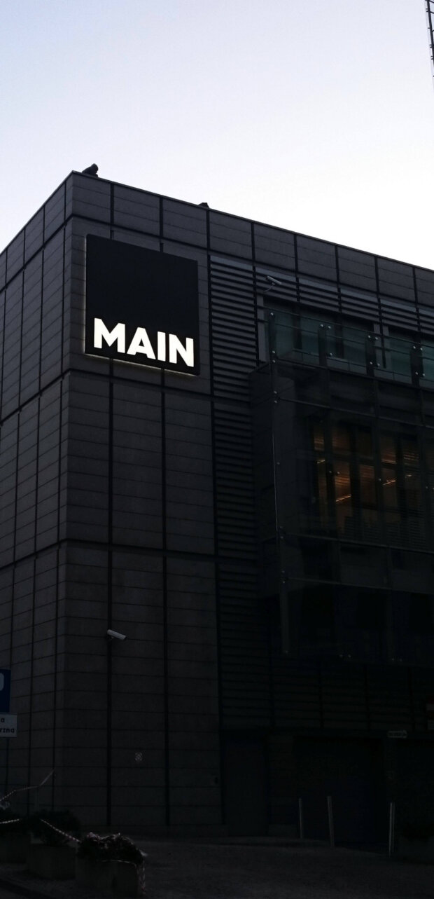 Ten na pozór nieduży projekt oznakowania zewnętrznego przysporzył nam mnóstwo satysfakcji – w ramach przeprowadzonych prac stworzyliśmy wielkoformatowe logo dla nowoczesnego centrum przetwarzania danych należącego do MAIN Sp. z.o.o.